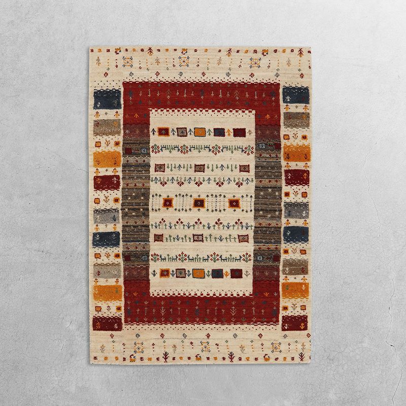 天然素材のウール100%で作られたインドギャベ。ちりばめられた紋様には一つひとつ民族の祈りが込められています。