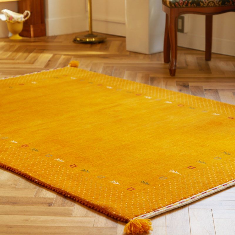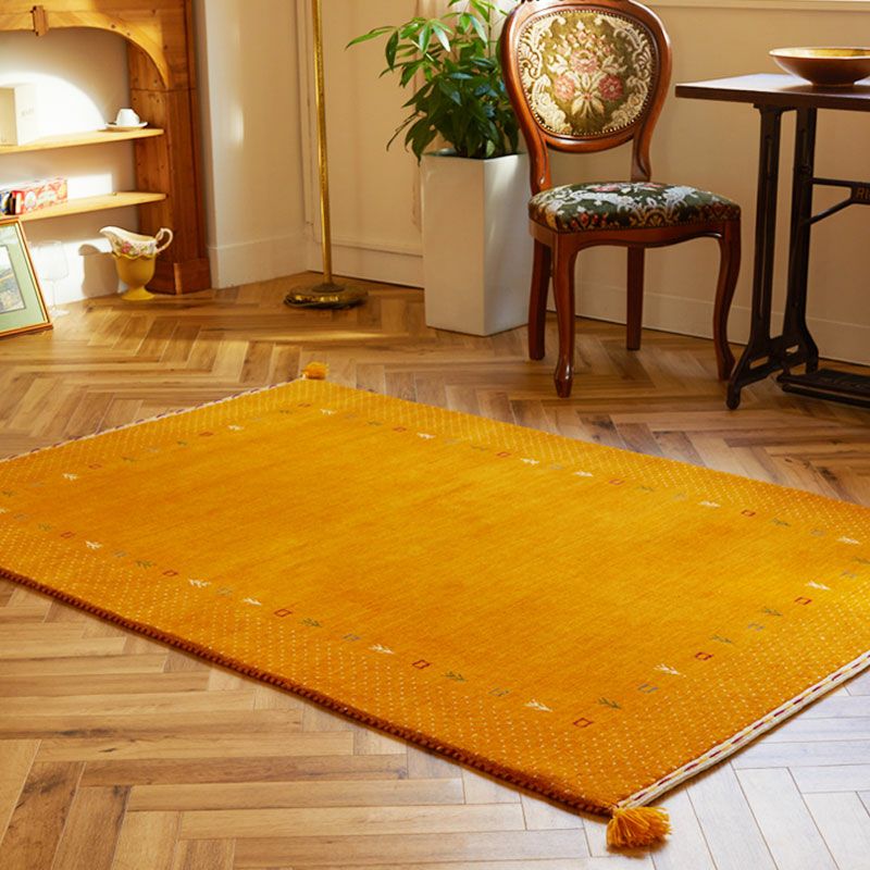 ウール100%の天然素材で織られたギャベは、しなやかさと耐久性を兼ね備え、インテリアの主役としても存在感を放つ一枚です。