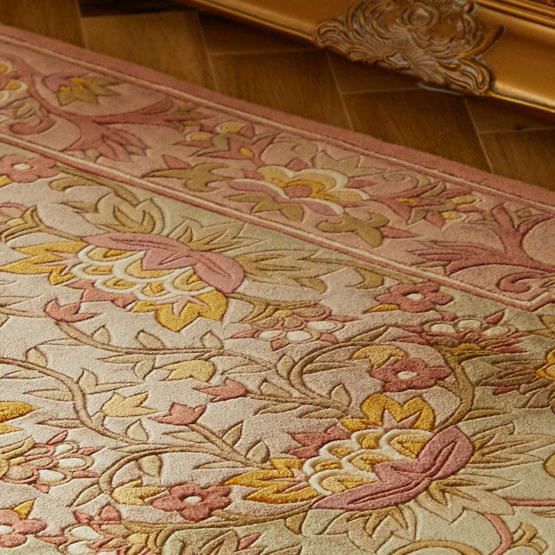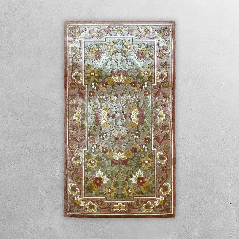 花柄 中国緞通 マット 「手織りシルク緞通」 桃色 #008