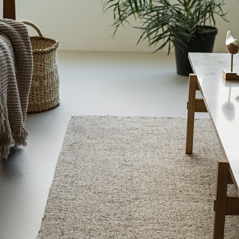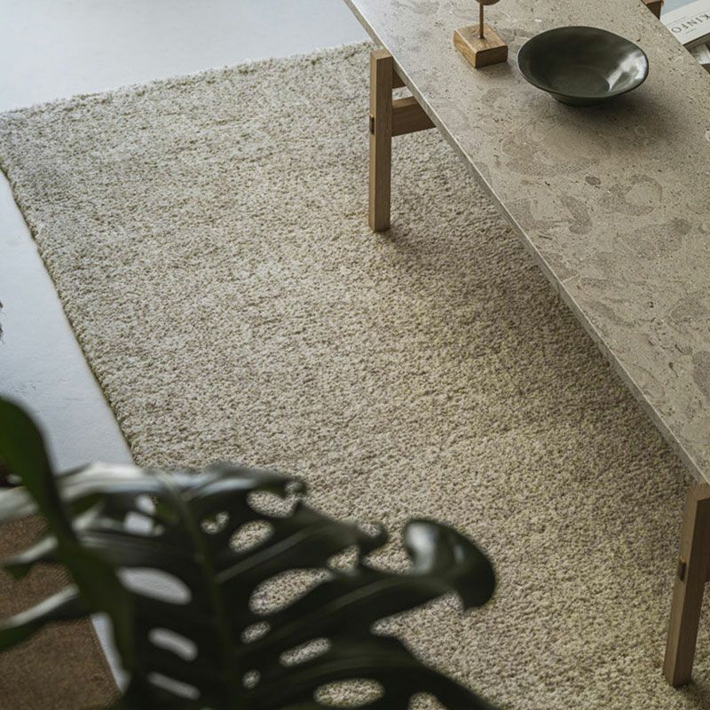 見るからにやわらかな印象のラグ。3色の細い糸を撚り合わせて奥行深い色合いに仕上げています。色合いと手触りのマッチングが素敵です。