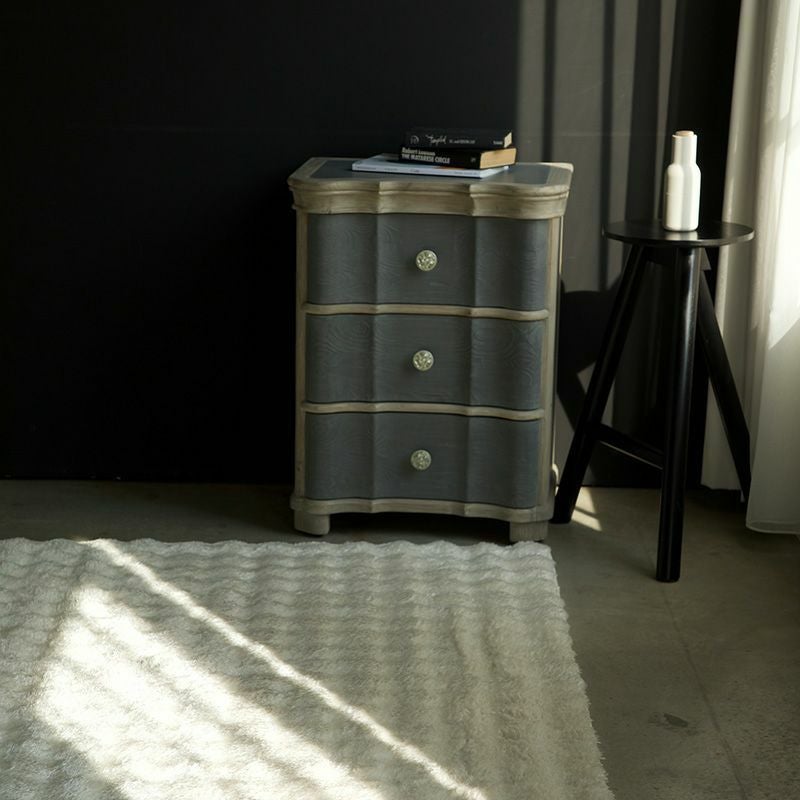 色遣いはグレーを基調にあえて少し古く見えるようなヴィンテージ加工を施したインテリアを合わせ、ラグの色もグレーやモカなどの色味を抑えたカラーを選んでいただくと、まとまりのある空間になります。