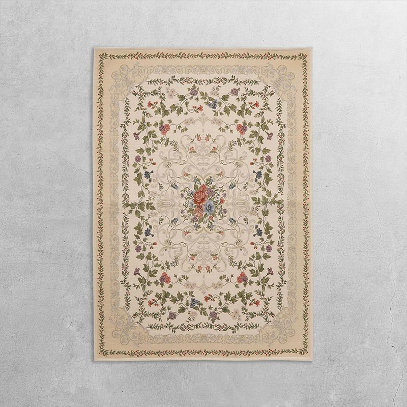 繊細な織物から作られたラグ。ヨーロッパの伝統的な椅子のカバーやバッグなどにも用いられる技術を使って作られているので、とても細かいデザインやカラーが表現されています。