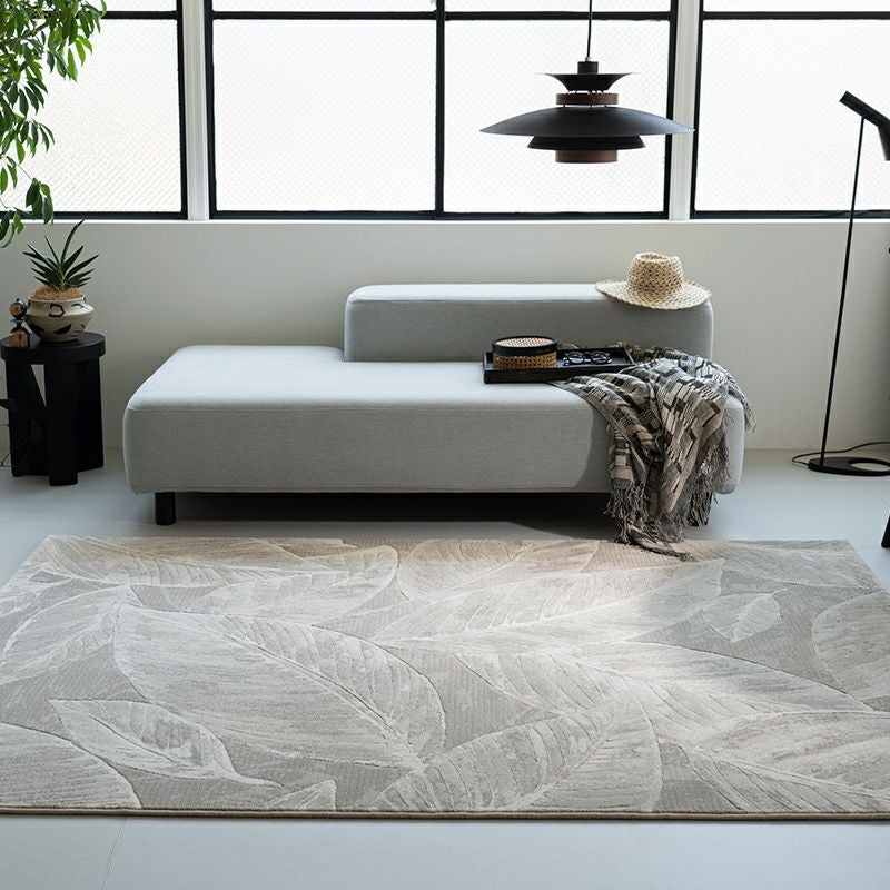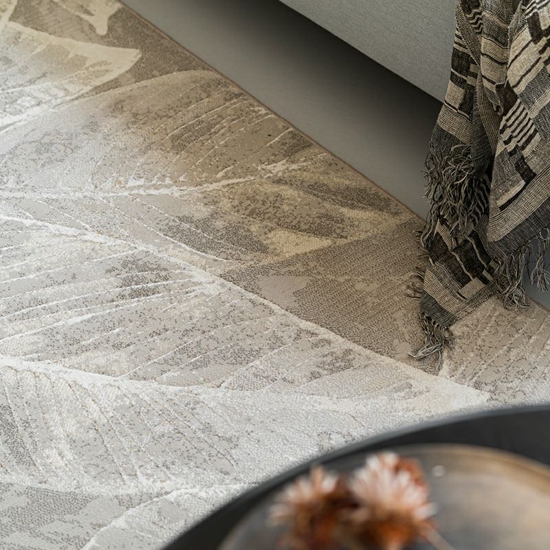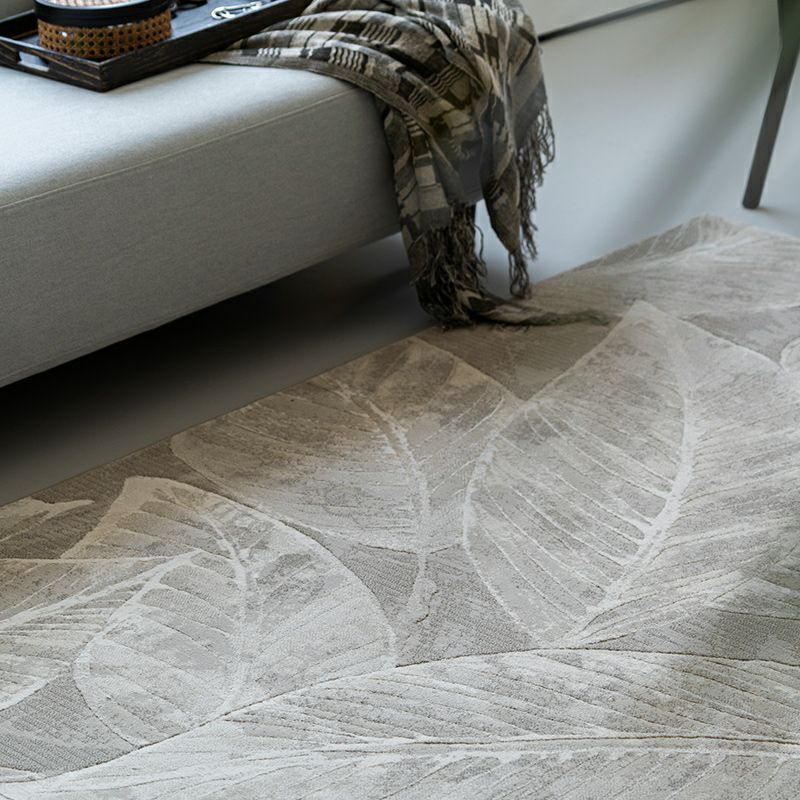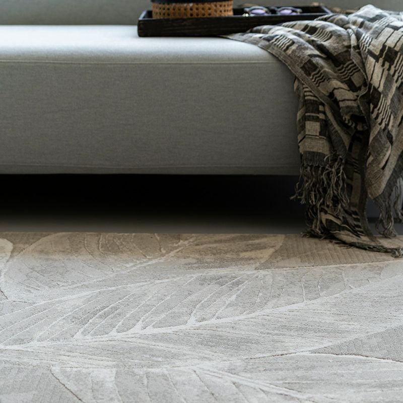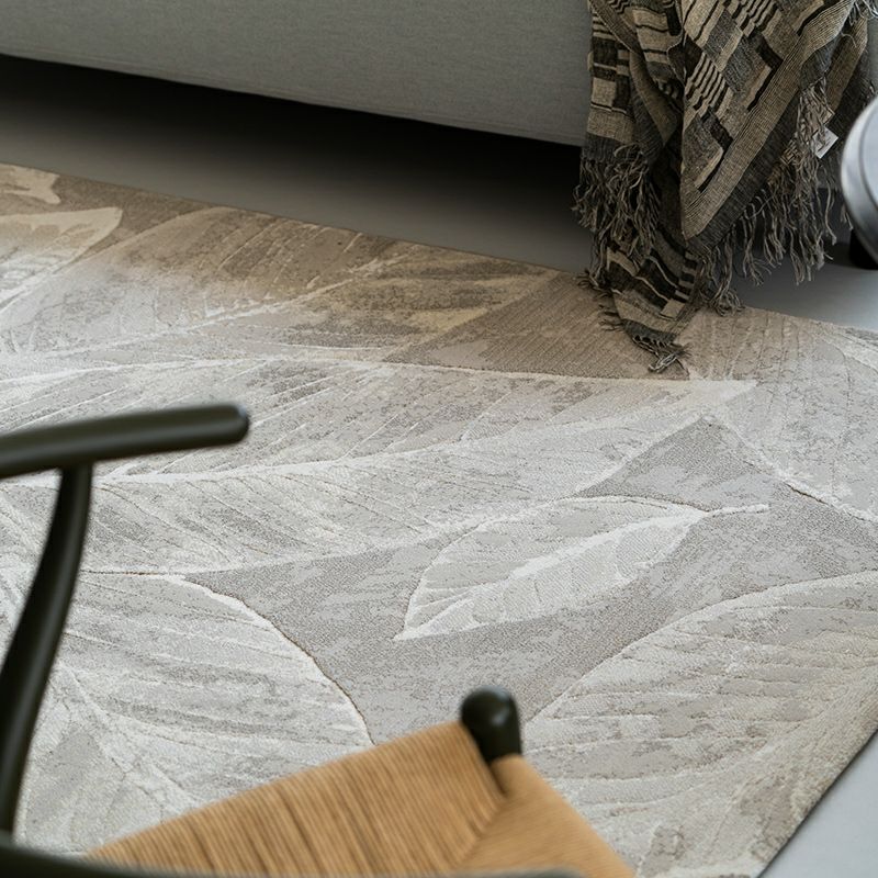 リーフ柄はナチュラルなテイストに合わせやすい印象がありますが、このラグについては、モダンやノルディックにも合わせていただけるデザインになっています。