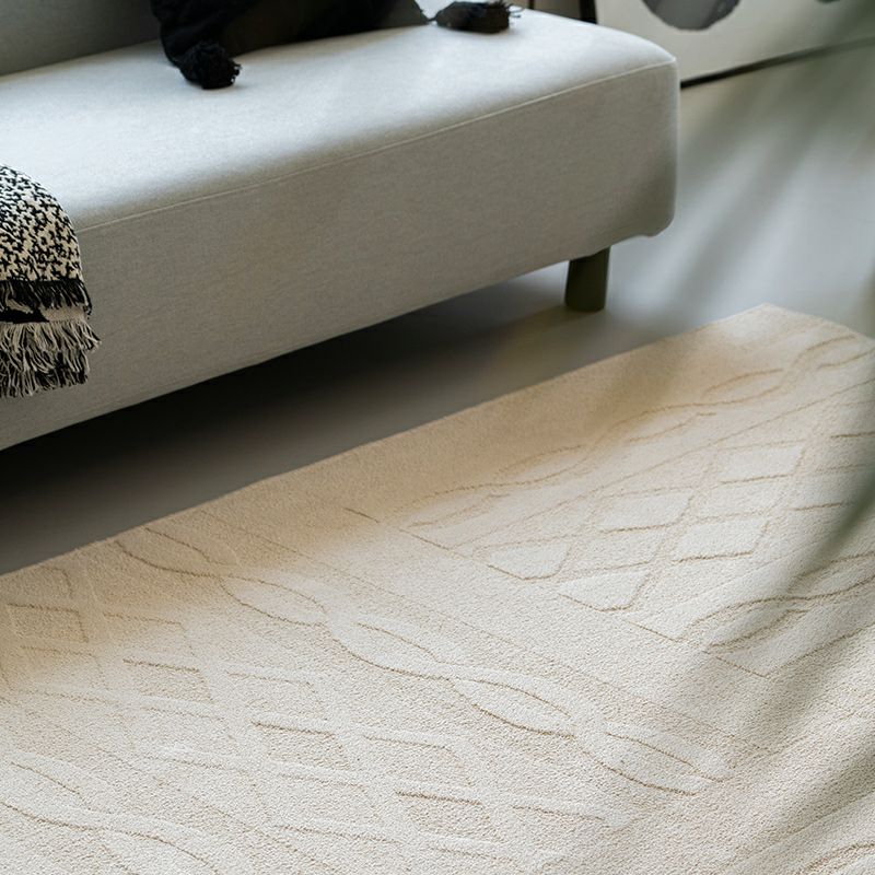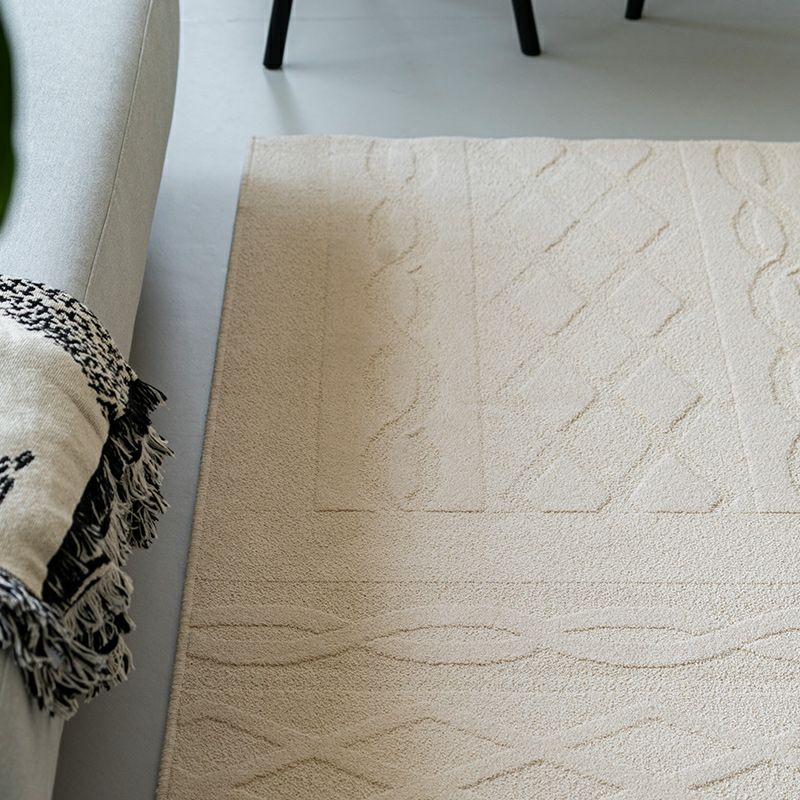 たっぷりと目付をつけた綿100%ラグだからこそ凹凸感だけでデザインを表現することができます。綿ならではの自然な色合いを保ちながらトレンドのニット柄が美しいラグです。