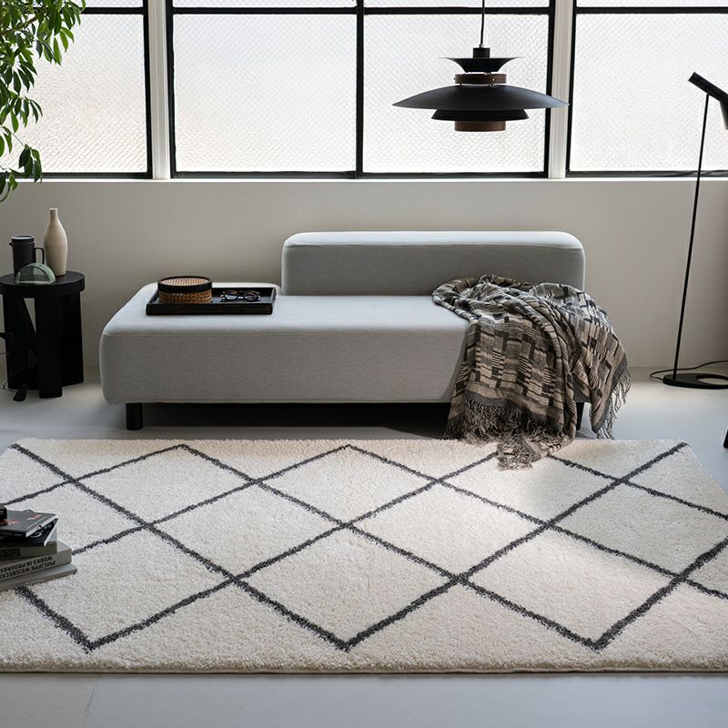 クールでスタイリッシュなデザインを好む方にぴったりなデザインのラグ。シャギーの生地の柔らかさで、よりリッチな印象を醸し出しています。スタイリッシュモダンなテイストにぴったりです。