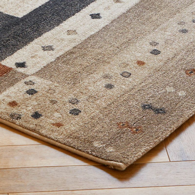 元々手織り絨毯で使用されていた柄をモチーフに織り上げられたウィルトン織ラグ。伝統的な手織り絨毯の柄をモチーフに織り上げられ、優しい色合いと上品な光沢感が特徴です。